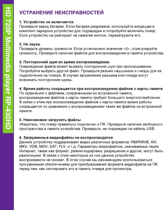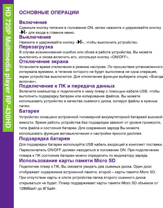 Инструкция к Ritmix RP430HD 4Gb Black