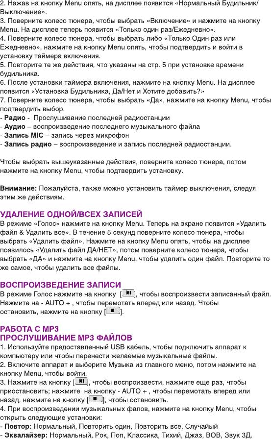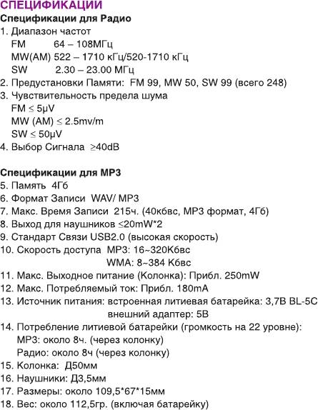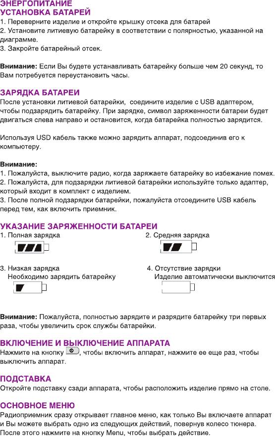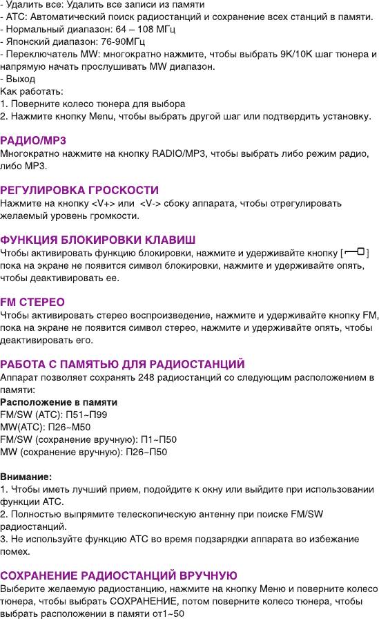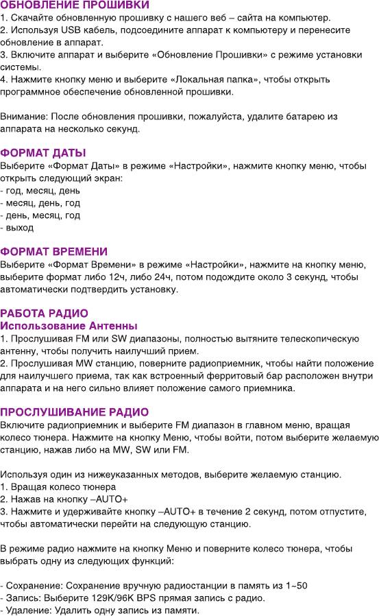 Инструкция к Радиоприемнику Ritmix RPR-7030