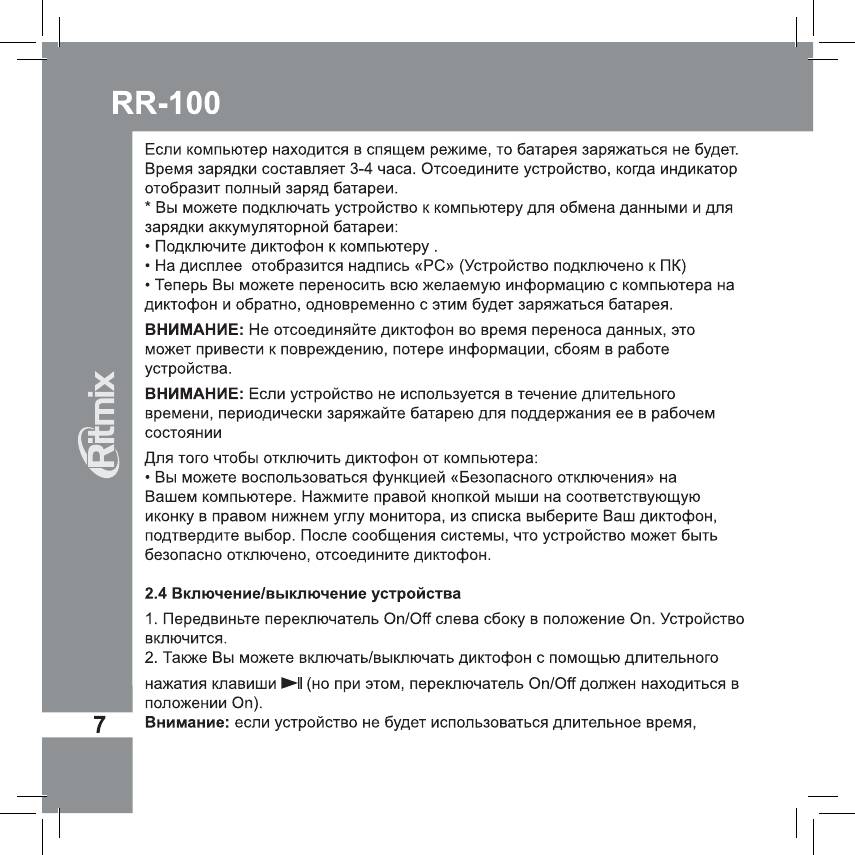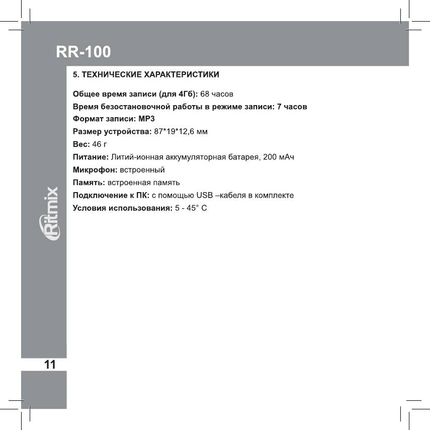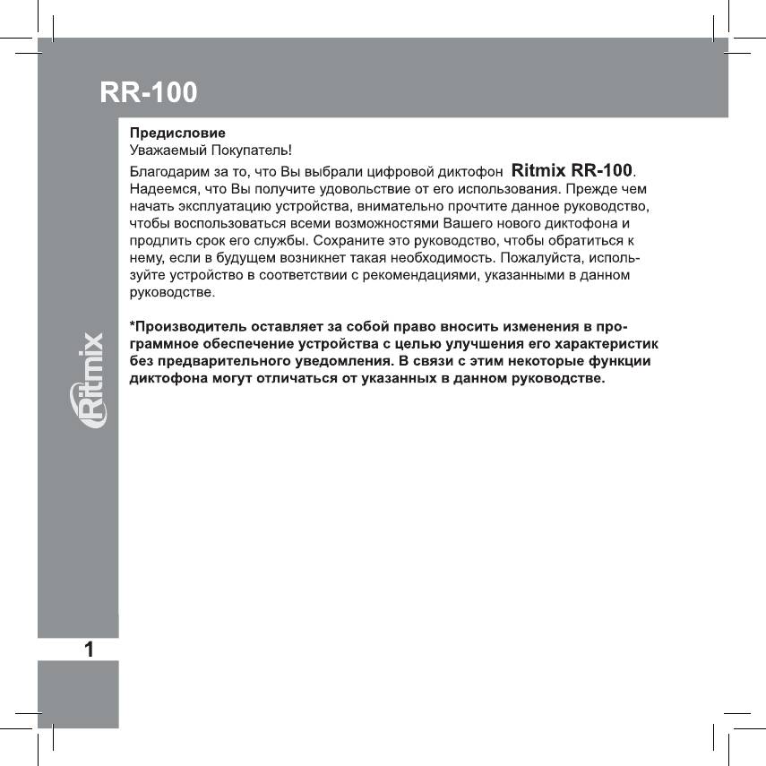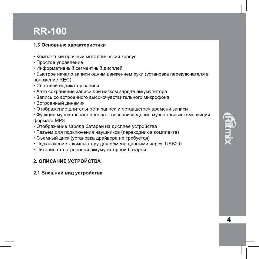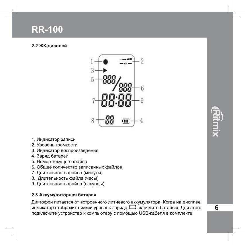 Инструкция к Диктофону Ritmix RR-100