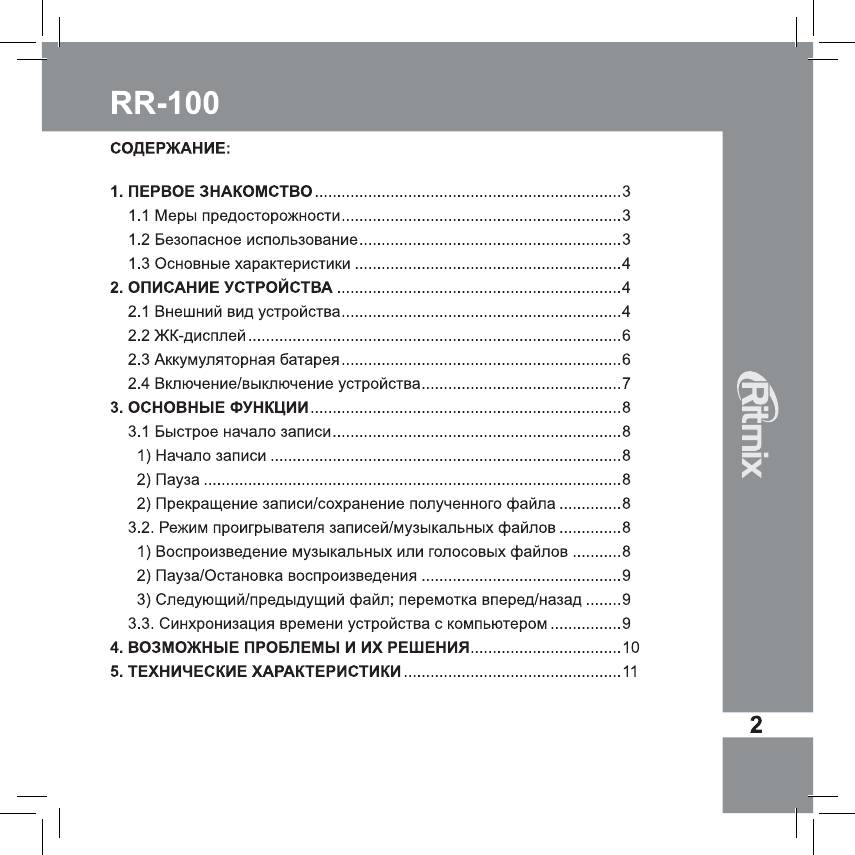 Аннотации для Диктофона Ritmix RR-100 в формате PDF
