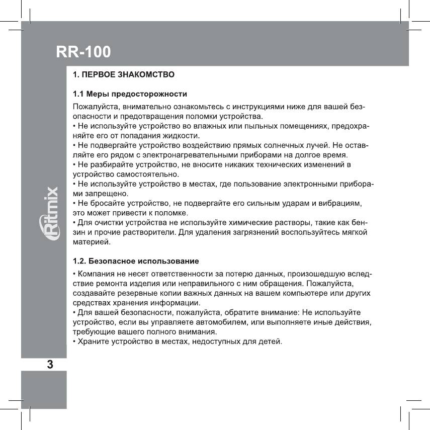 Ritmix RR-100: инструкция