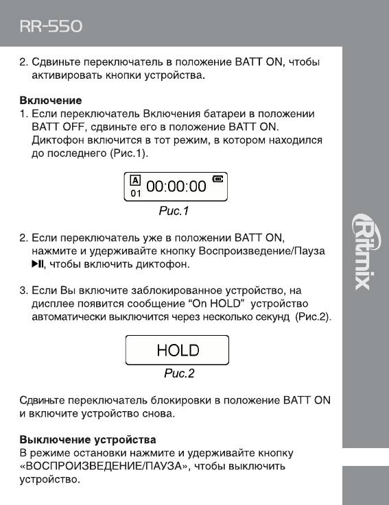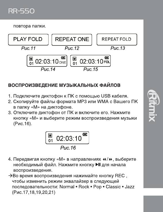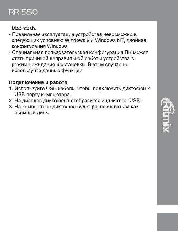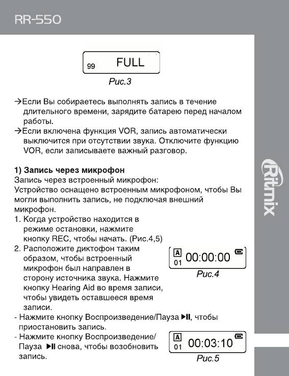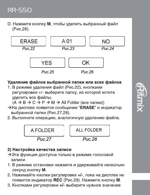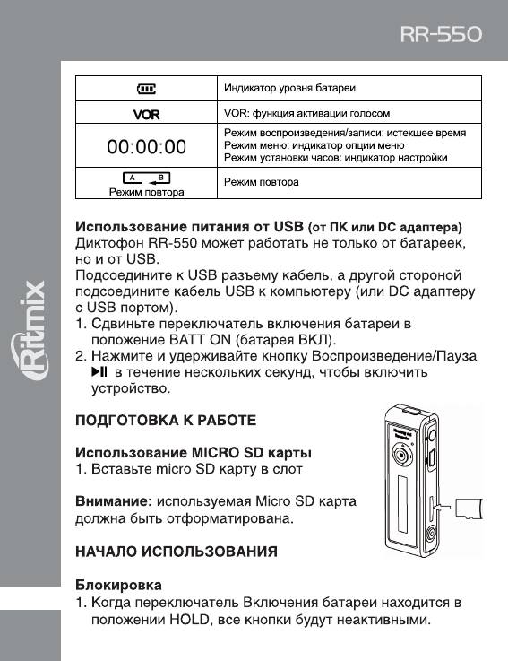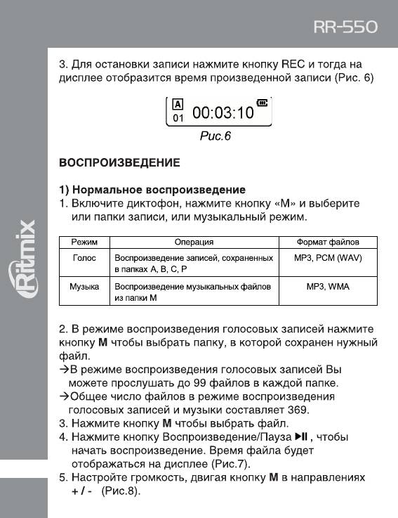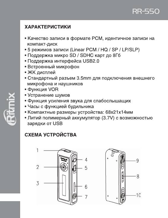 Инструкция к Цифровому Диктофону Ritmix RR-550