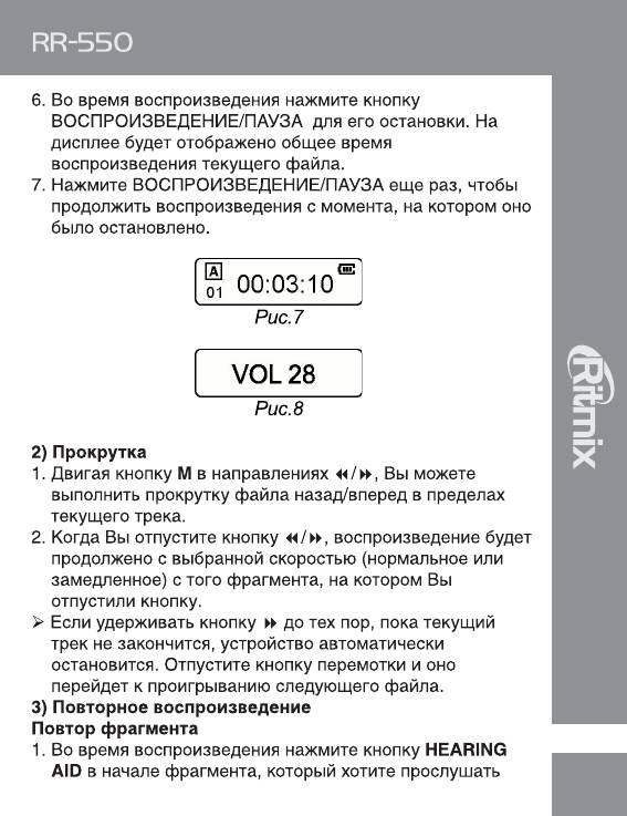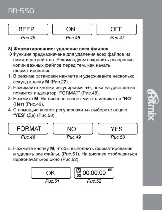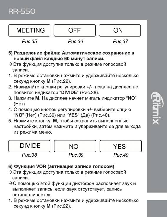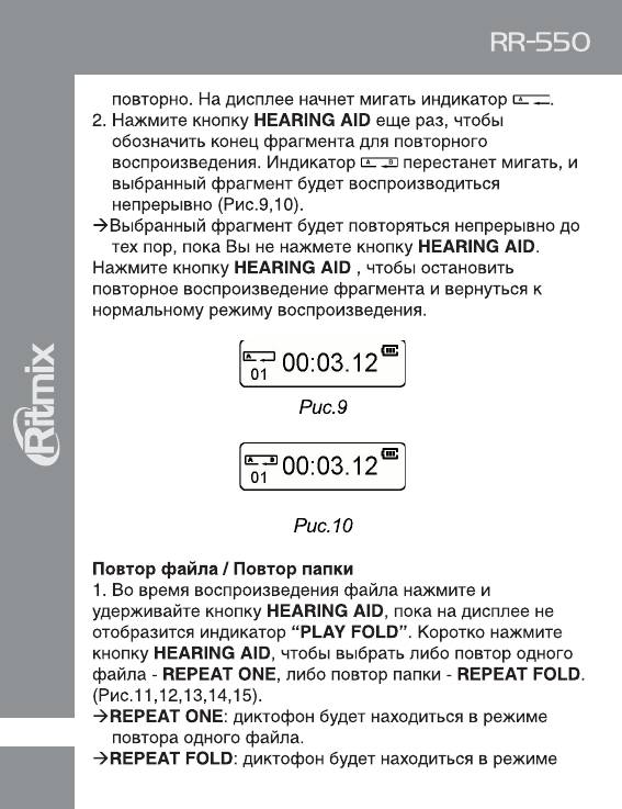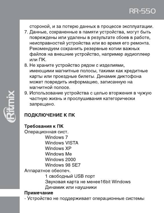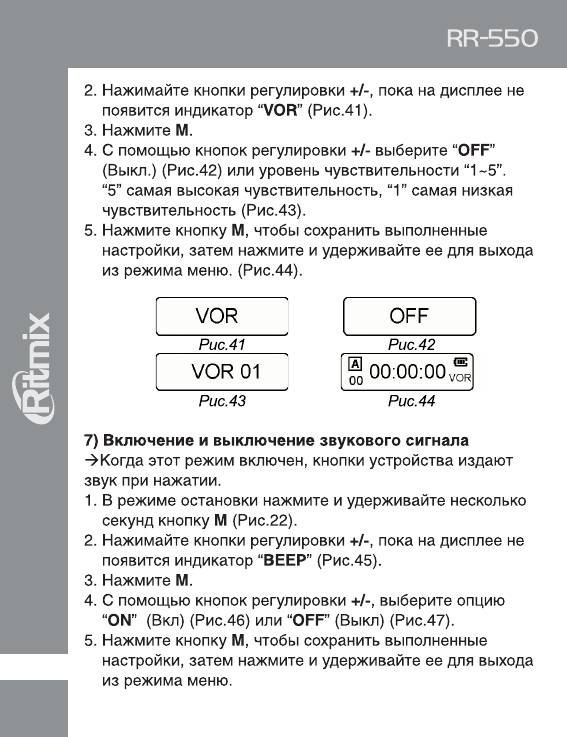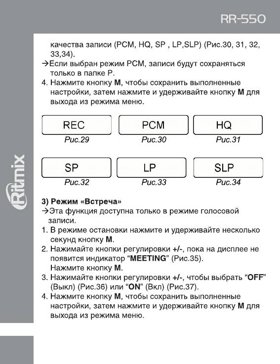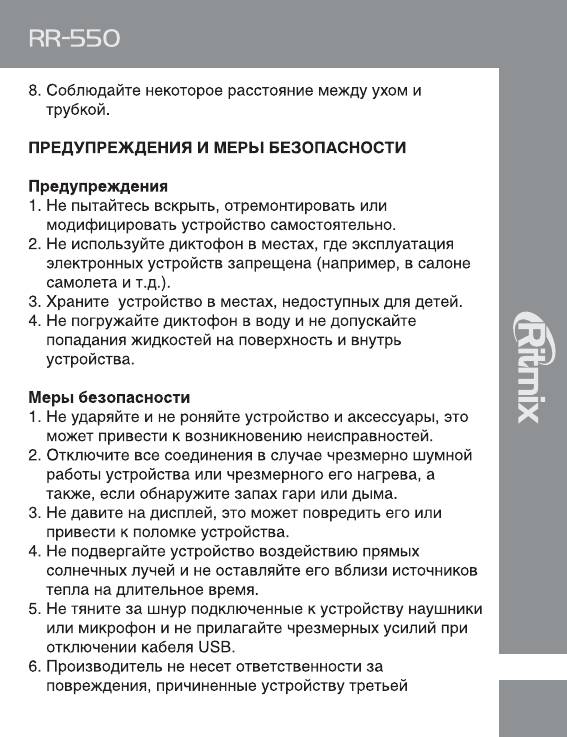 Инструкция к Цифровому Диктофону Ritmix RR-550