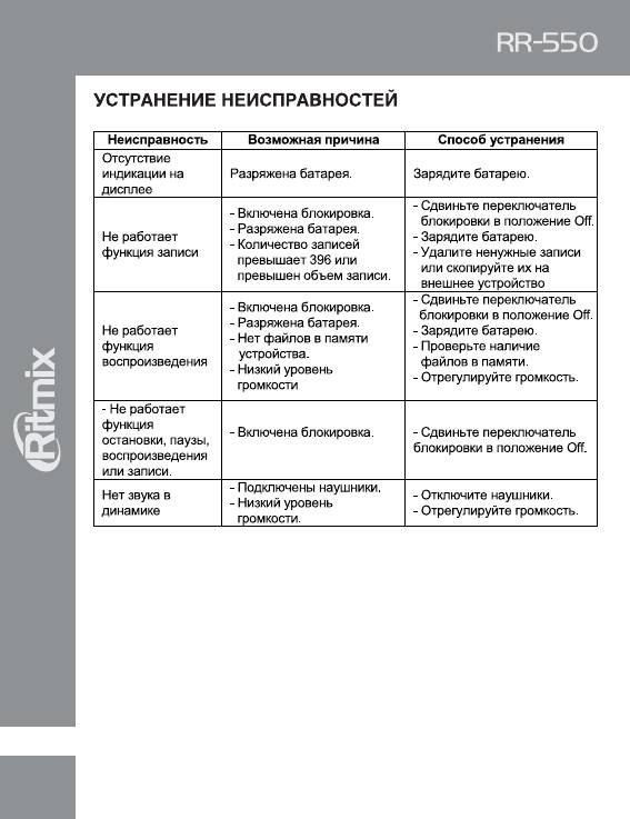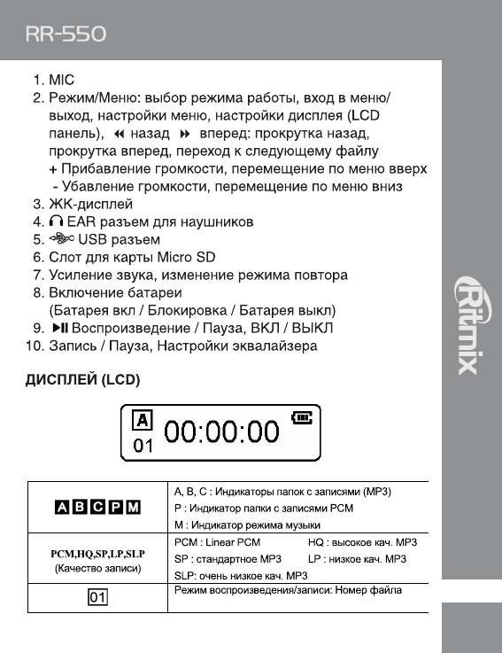 Ritmix RR-550: инструкция