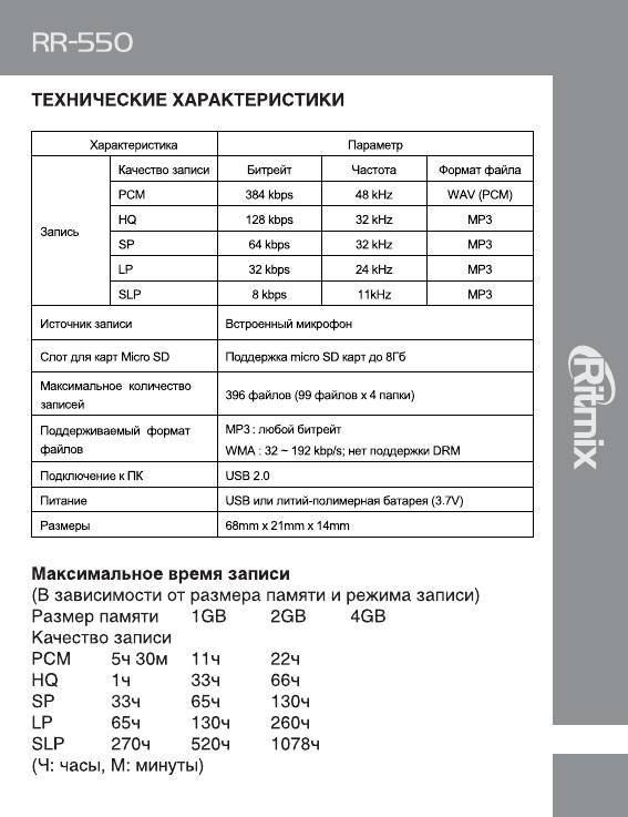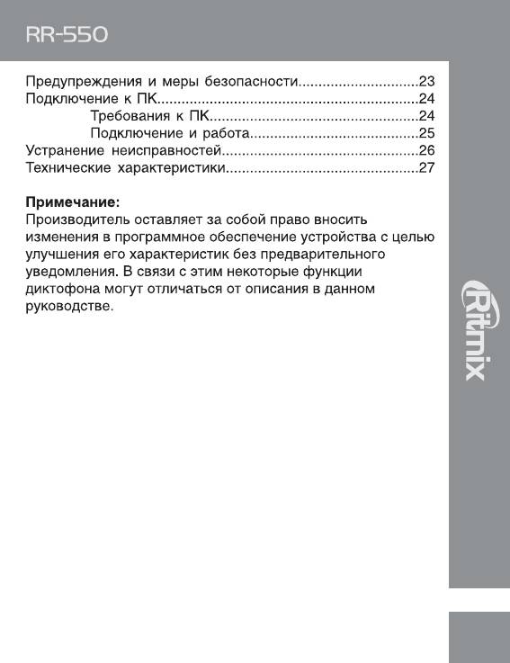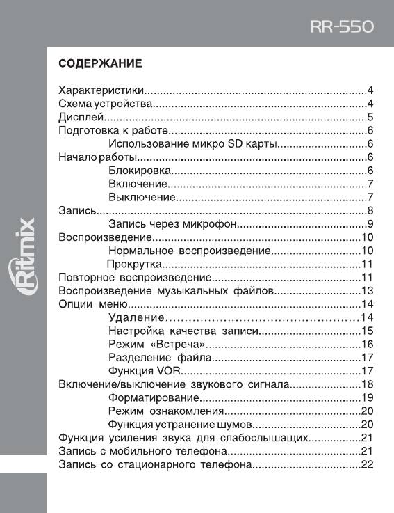 Аннотации для Цифрового Диктофона Ritmix RR-550 в формате PDF