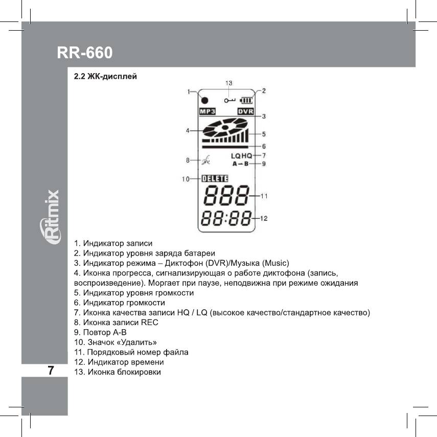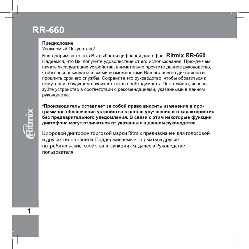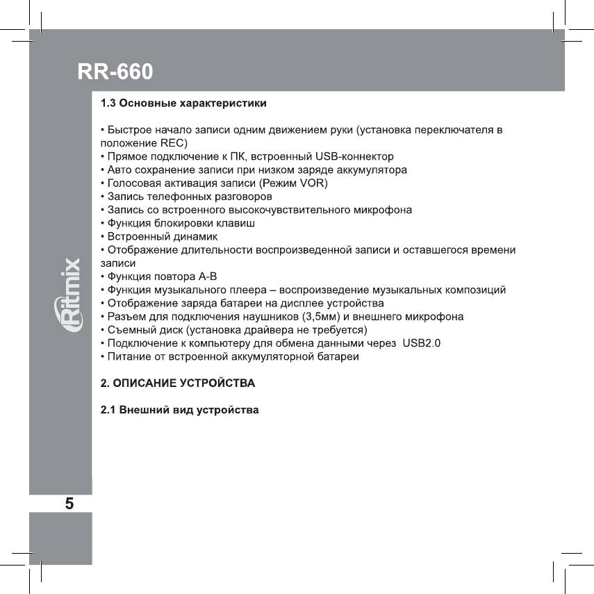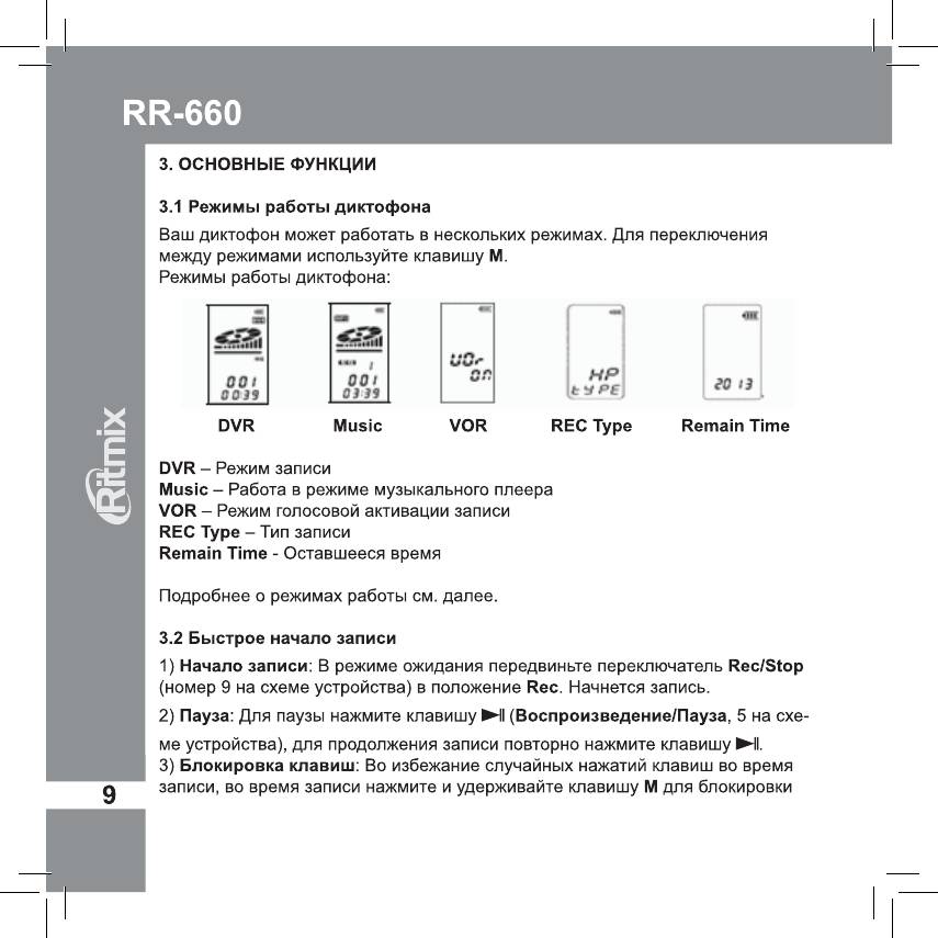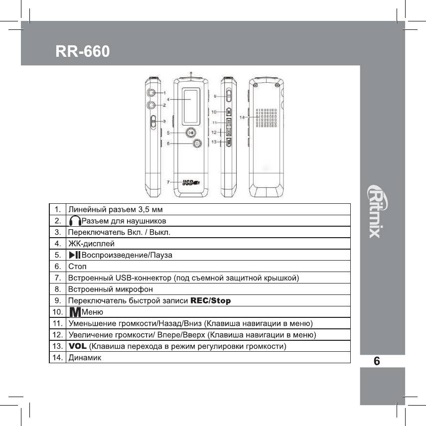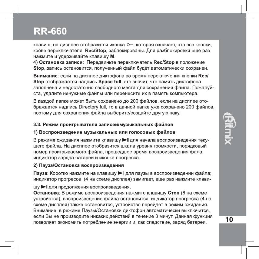 Инструкция к Цифровому Диктофону Ritmix RR-660 4Gb Red