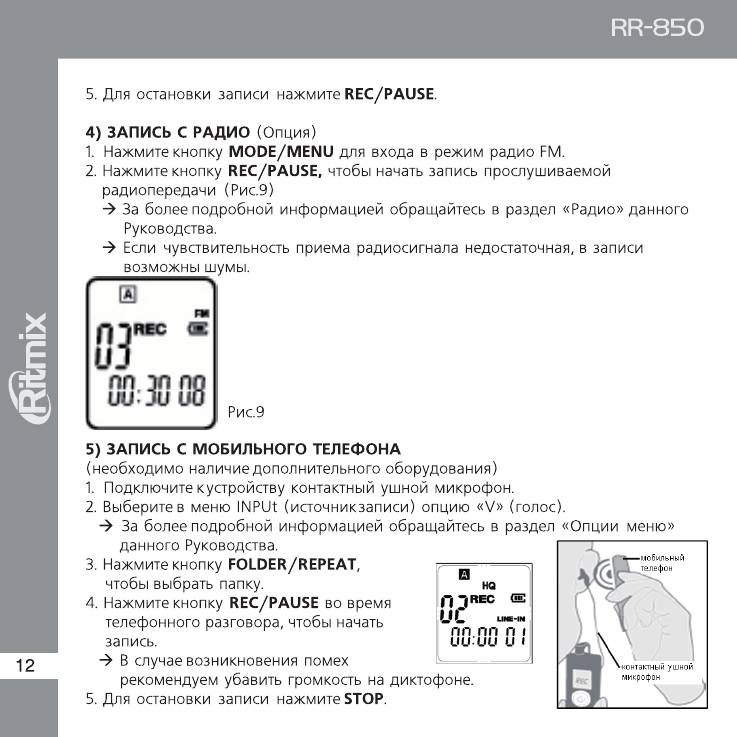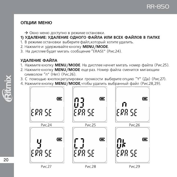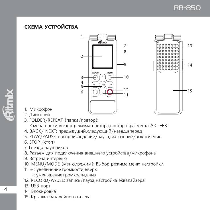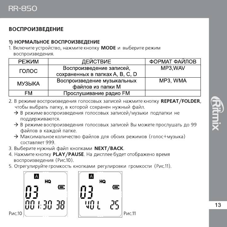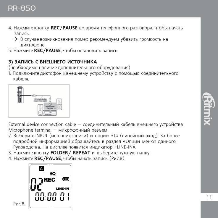 Инструкция к Диктофону Ritmix RR-850