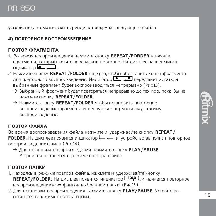 Ritmix RR-850: инструкция