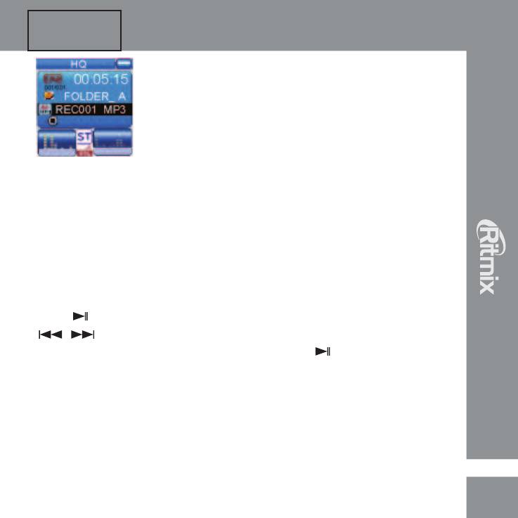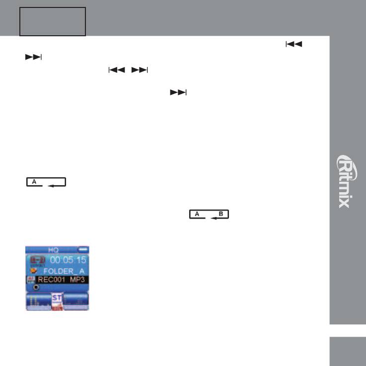 Отпустите клавишу, и диктофон начнет воспроизведение следующего файла.