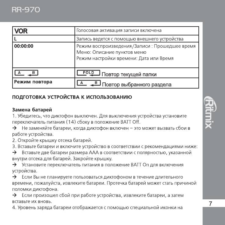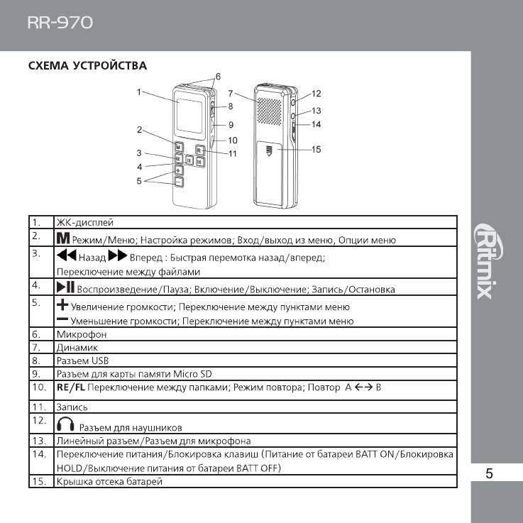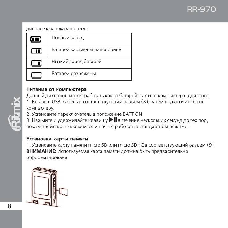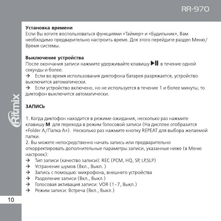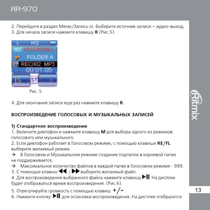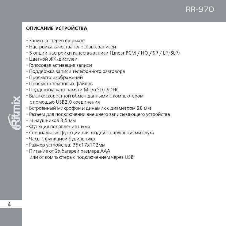 Инструкция к Цифровому Диктофону Ritmix RR-970