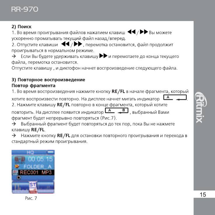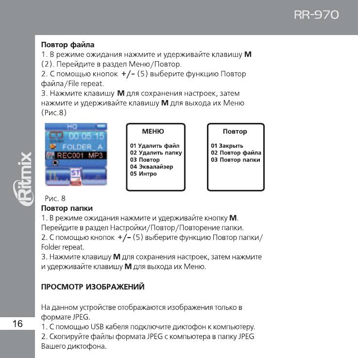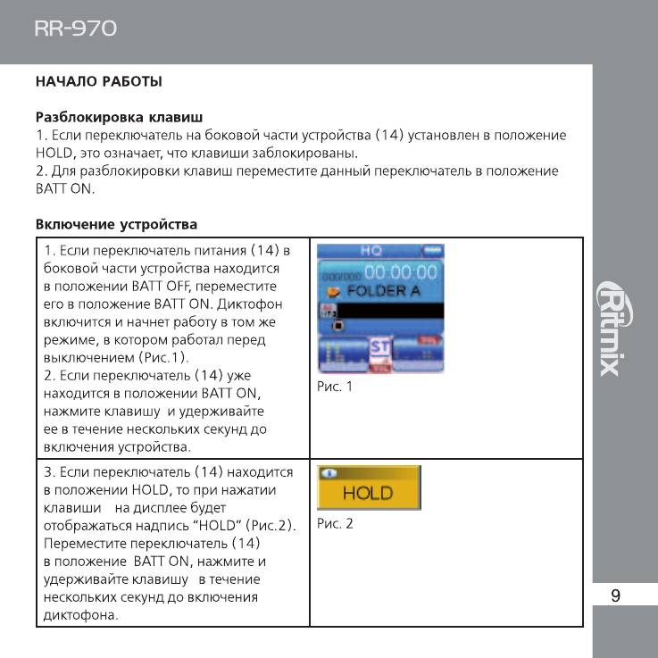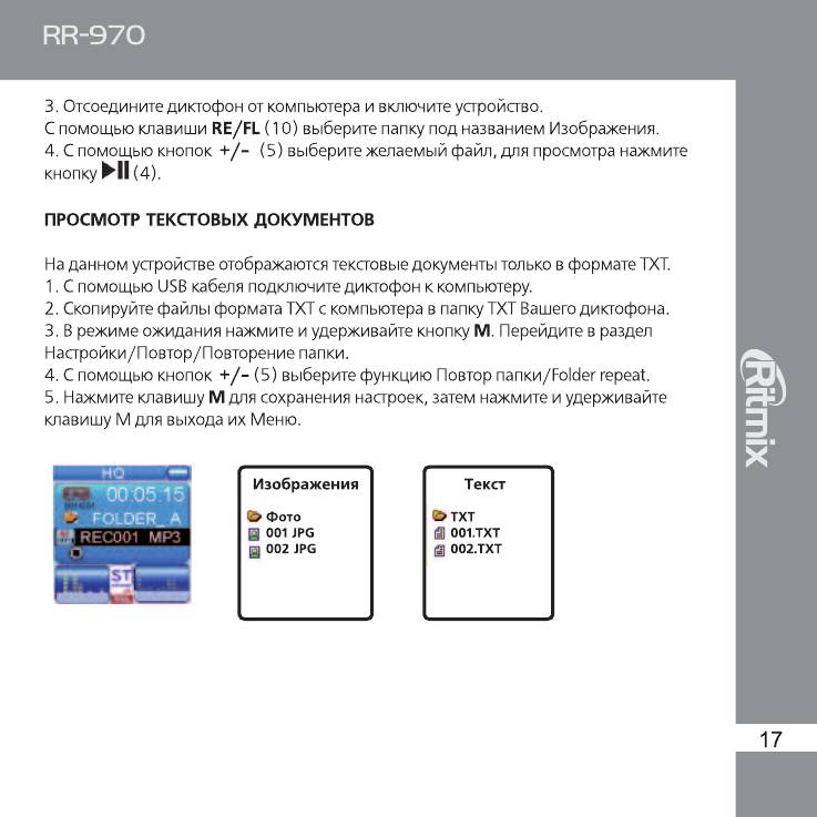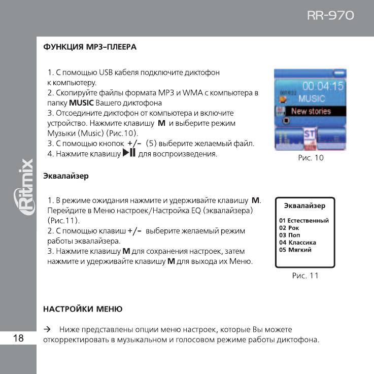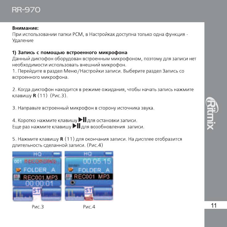 Инструкция к Цифровому Диктофону Ritmix RR-970
