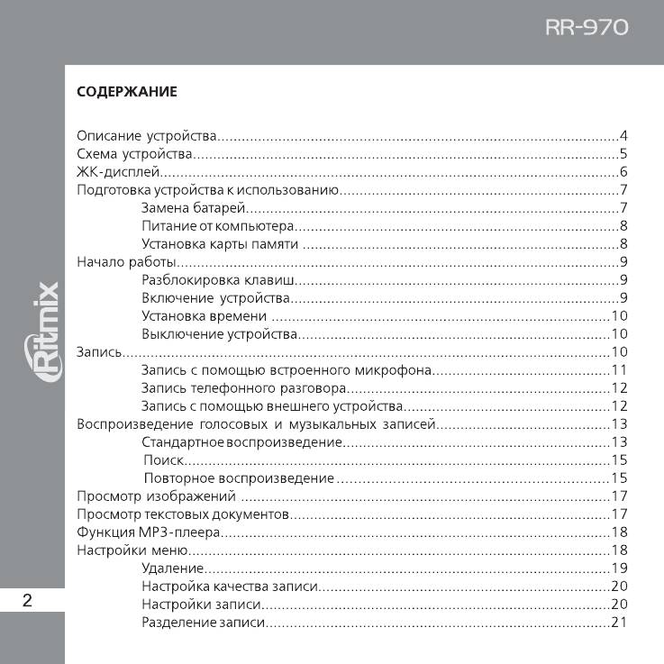 Аннотации для Цифрового Диктофона Ritmix RR-970 в формате PDF