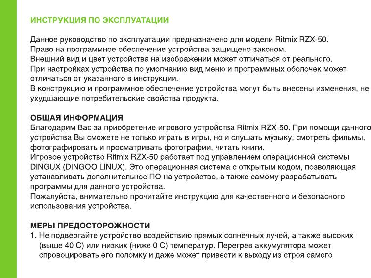 Инструкция к Игровой Приставке Ritmix RZX-50