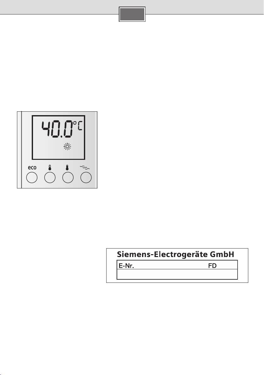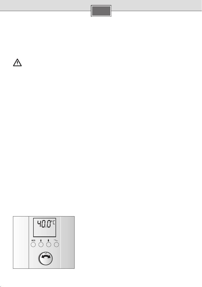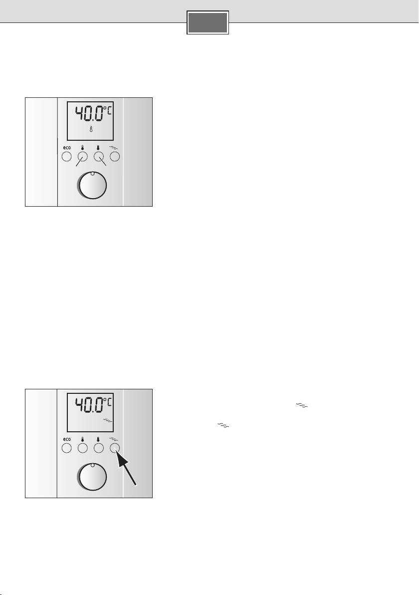 Die Grundeinstellung der Wassertemperatur nach Erstinbetriebnahme oder Netzausfall beträgt 40 °C.