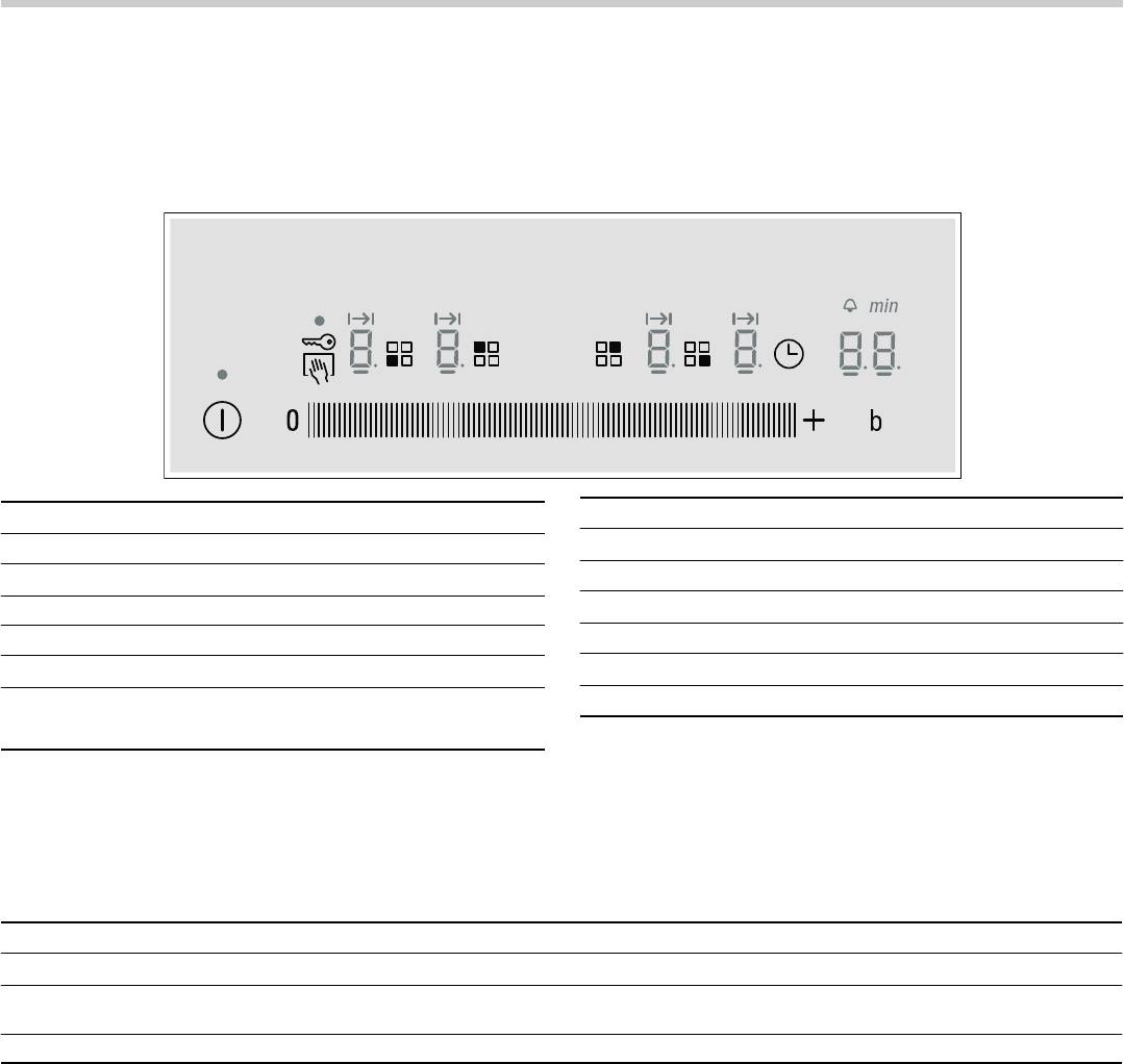 - Управление варочной панелью Таблица с рекомендациями по приготовлению пищи Уровень мощности Время приготовления