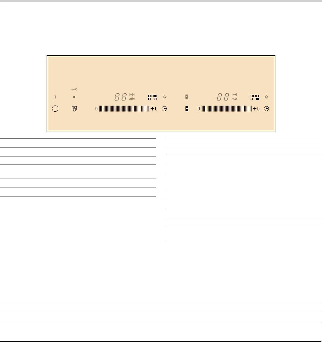 - Управление варочной панелью Таблица с рекомендациями по приготовлению пищи Уровень мощности Время приготовления