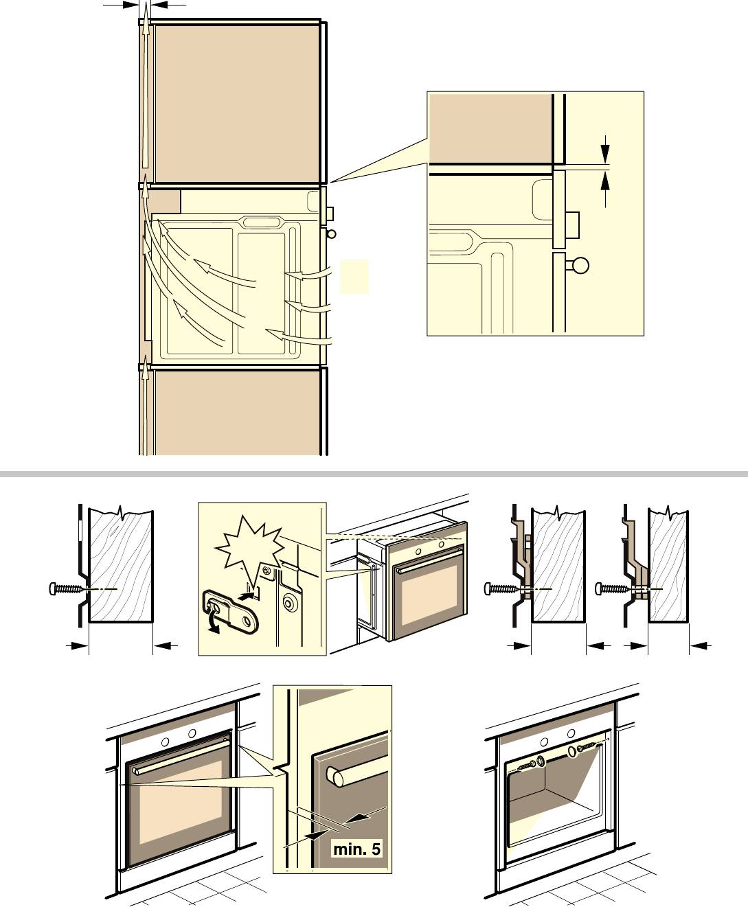■ Cihaz ve mobilya kenarı arasında 5 mm'lik bir hava boşluğu