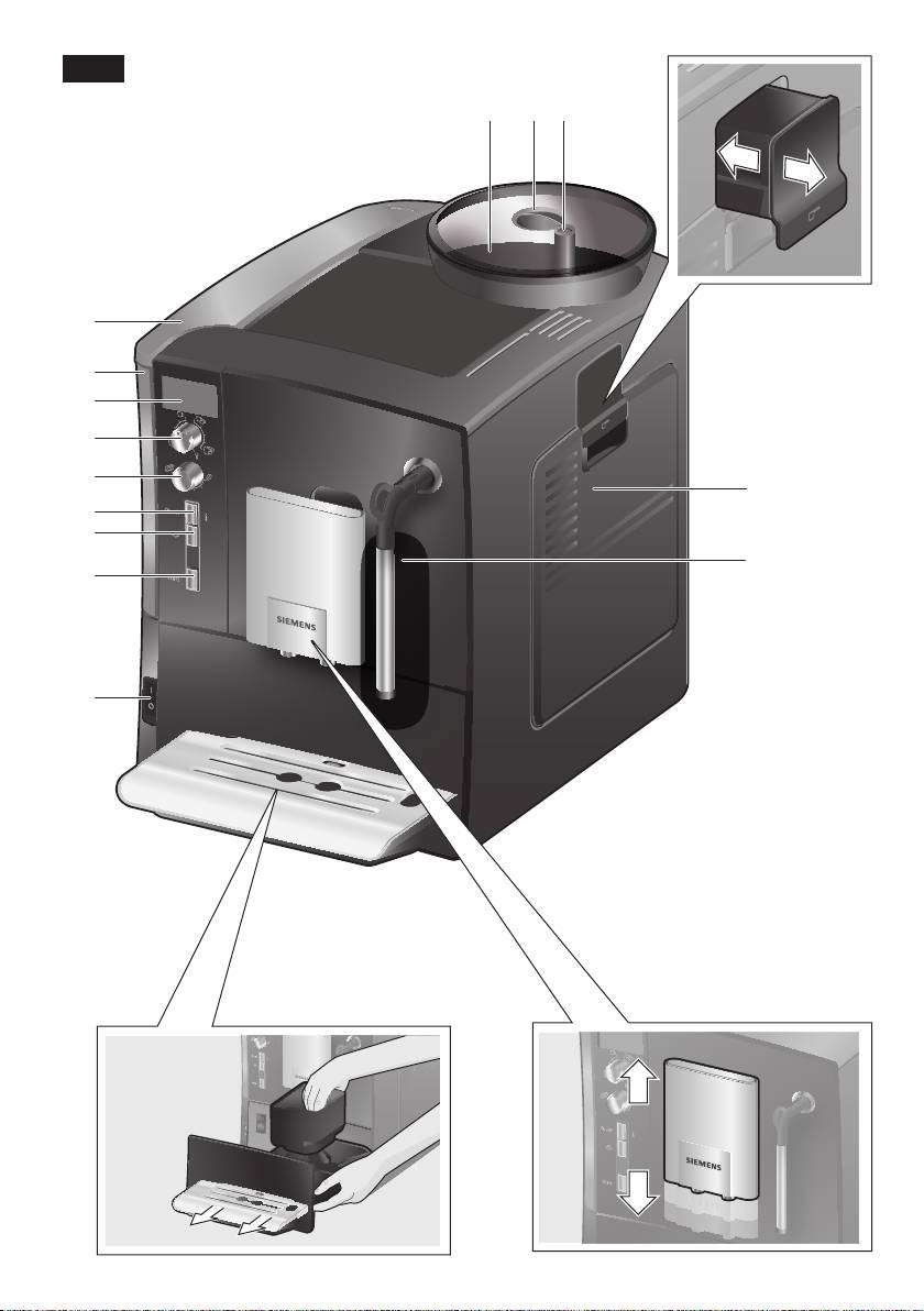 ● Pull the milk frother (6) to open it.