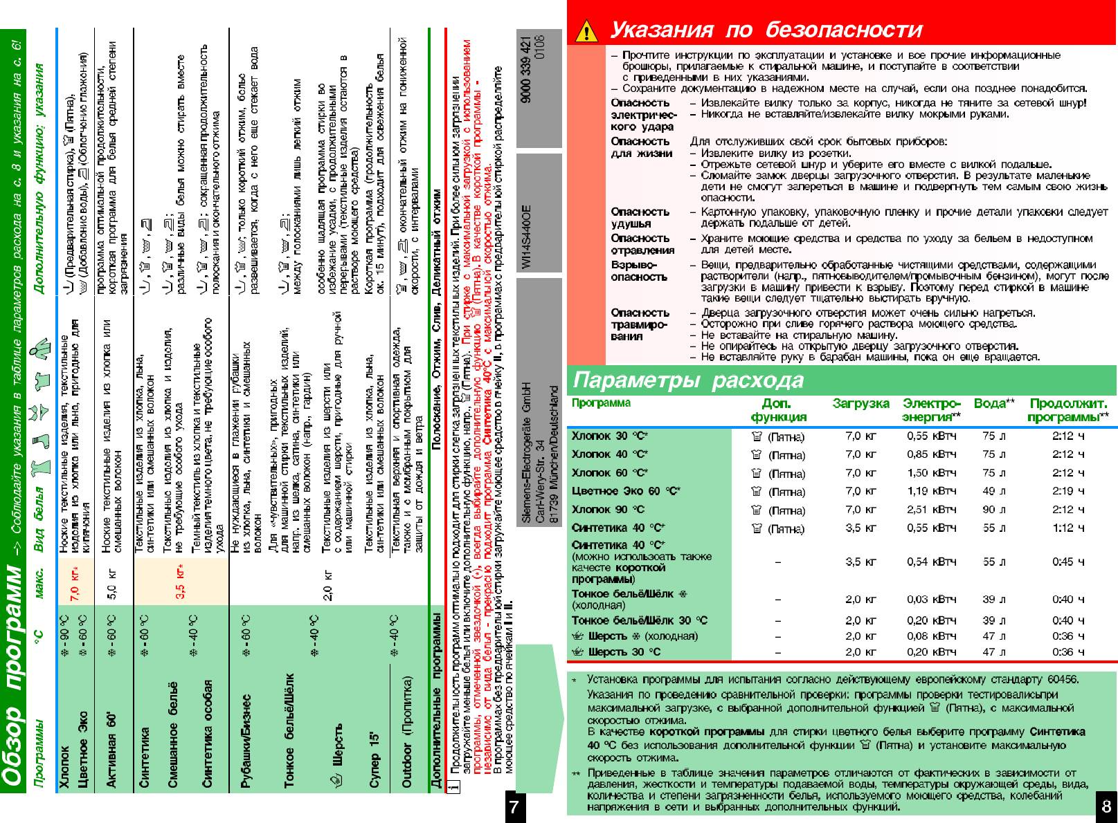 Инструкция к Стиральной Машине Siemens WI 14S440