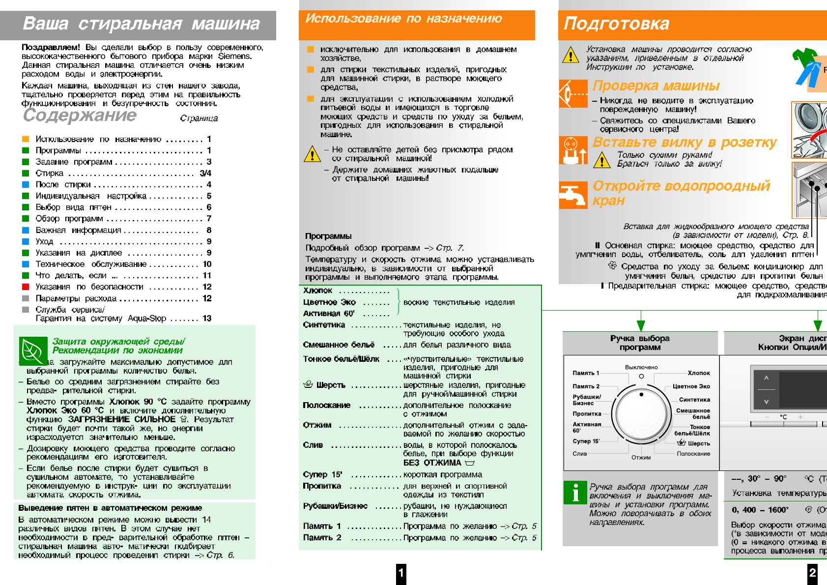 Инструкция к Стиральной Машине Siemens WM16S740OE