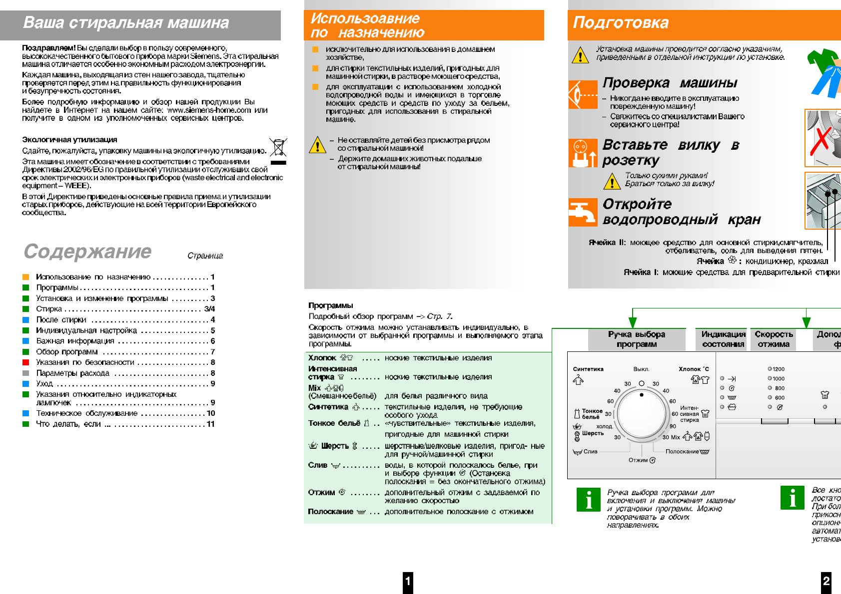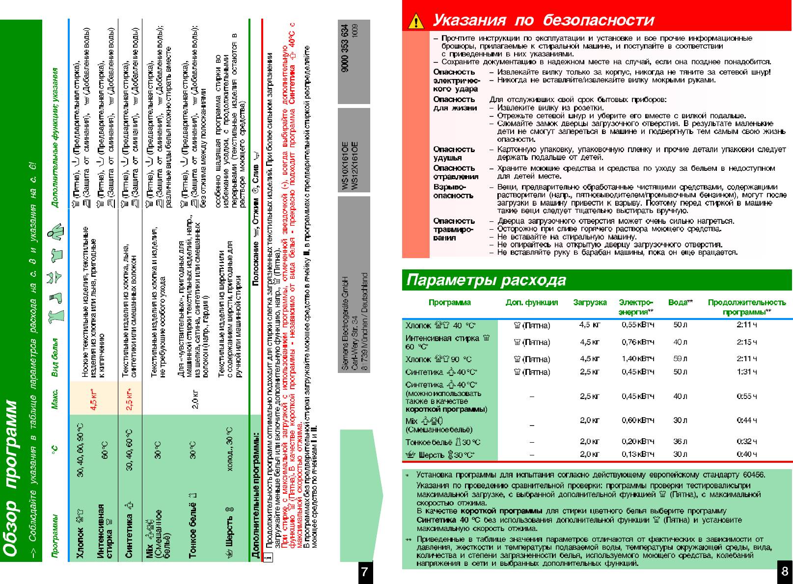 Инструкция к Стиральной Машине Siemens WS10X161OE
