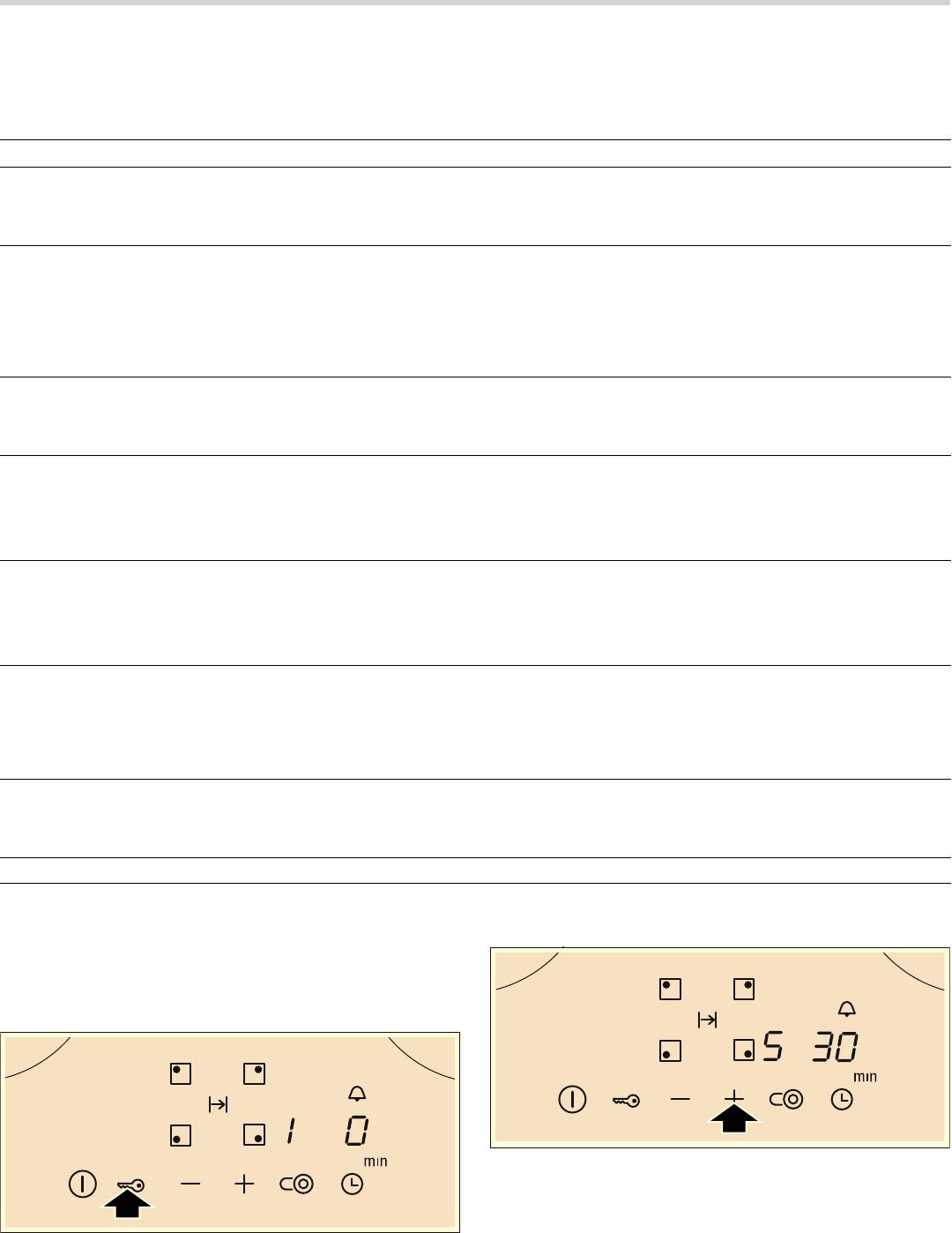 ‚ После выбора конфорки можно выполнять установки в течение 10 секунд, по истечении этого времени перед