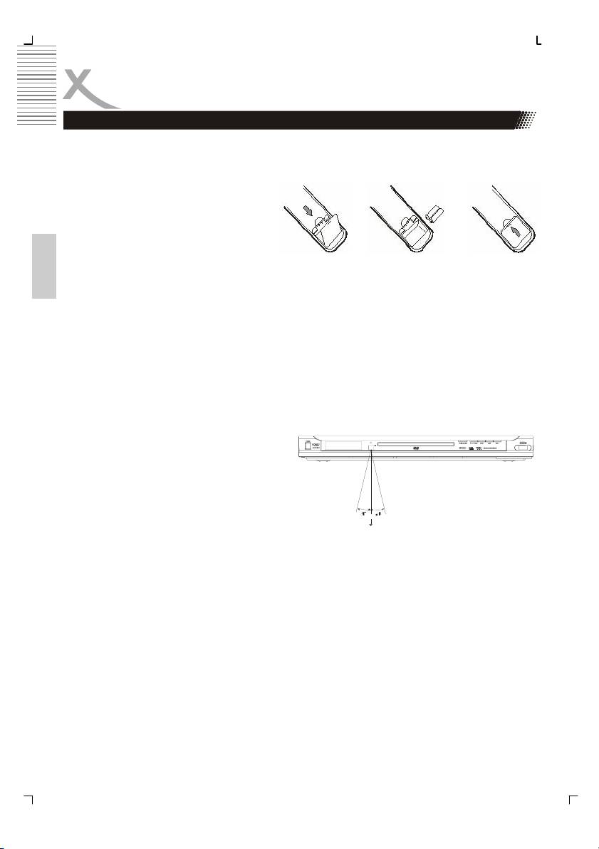 Insert the batteries in the remote control: