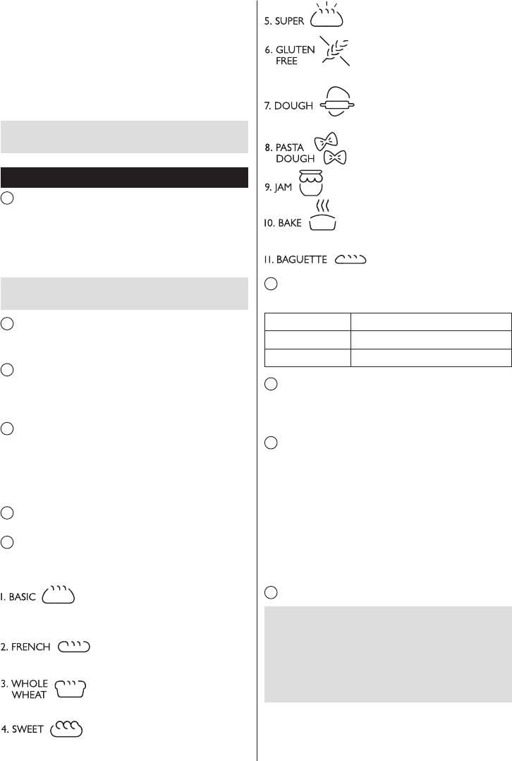 ciasta (RISE), wypieku (BAKE), funkcji utrzymywania ciepła
