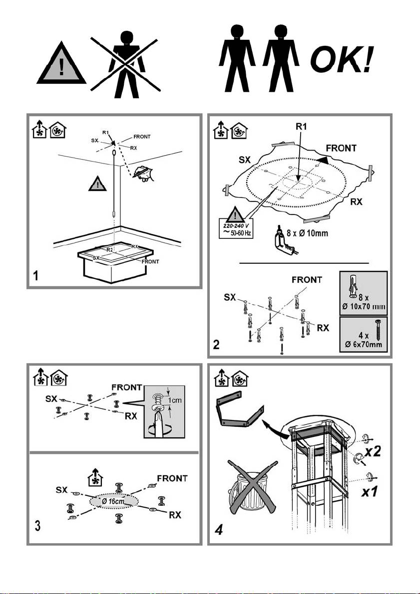 Questo tipo di cappa deve essere fissata al soffitto.