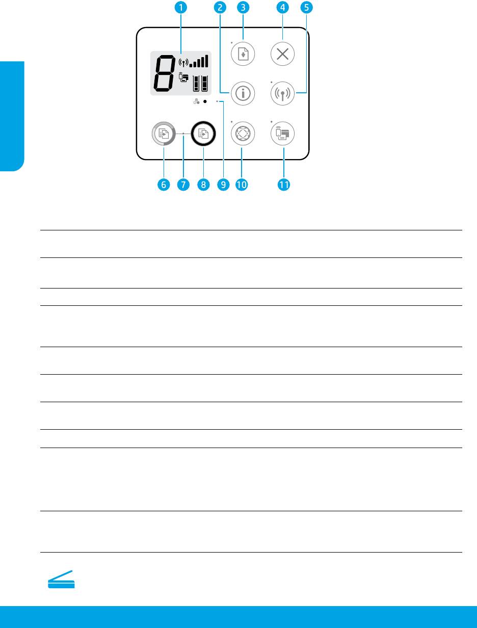 Wireless button: Turns on or o the printer wireless capabilities.