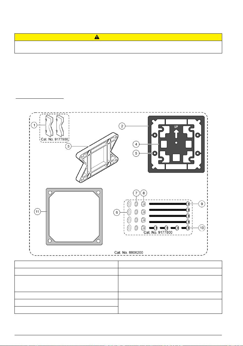 1 Asennusjalka (2 kpl) 7 Lukkoaluslevy, ¼ tuuman sisähalkaisija, (4 kpl)