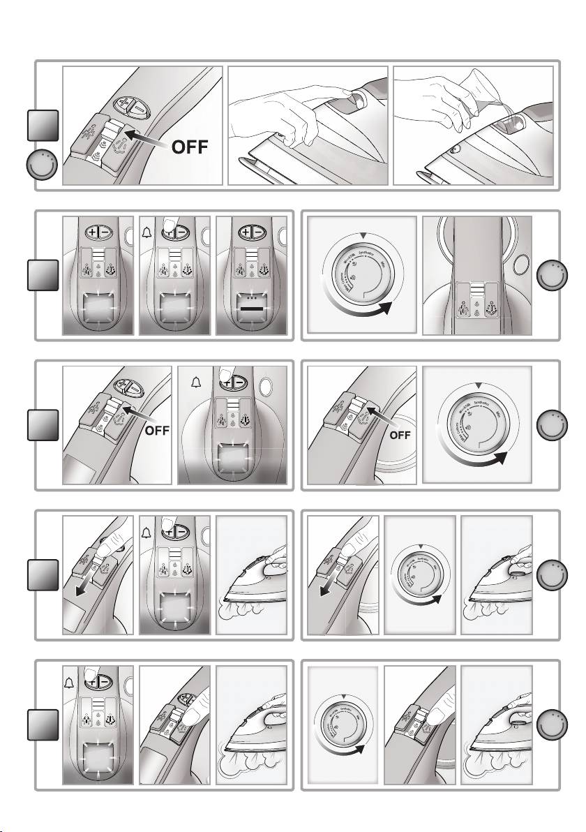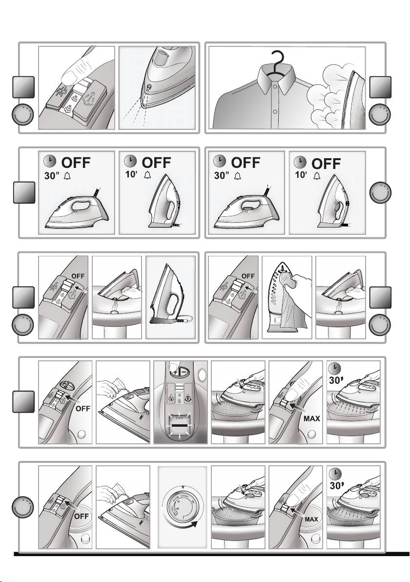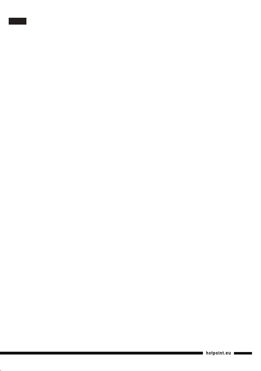 - • Il ferro da stiro è equipaggiato con un sistema di sicurezza Power off system.Dopol’inserimentodellaspinanellapresadicorrente,èsuf- ciente spostare il ferro per attivarne l’accensione. en GENERAL SAFETY INSTRUCTIONS • Do not operate the iron in case of damaged plug, power cord or appliance, or in the presence of visible damage or water leaks from the appliance. In such a case the appliance must be inspected by the Hotpoint authorized technical staff in order to avoid dangerous situations. • If the appliance was dropped, do not operate it. • The appliance is not intended to be used by individuals (children includedupto8yearsofage)withimpairedphysical,sensoryormental capabilities, inexpert individuals or individuals who are not familiar with the product, unless they are supervised by a person responsible for their safety, or by individuals who have not received preliminary instructions on the use of the appliance. • Supervise children to prevent them from playing with the appliance. • Never leave the appliance unattended when the plug is connected into the electrical socket. • Aftereachuseoftheappliance,whenllingandemptyingthewater reservoir, as well as when cleaning the appliance, set the steam regulator to Off. Then place the appliance in a stable position, using the stand, and disconnect the plug from the electrical socket. • The appliance mustbe used and placed on a stable, at horizontal surface. The use on an ironing board is recommended. • For your safety, all repairs or maintenance operations must be carried out exclusively the the Hotpoint authorized technical staff. • Keep the iron and its cord out of reach of children less than 8 years of age when it is energized or cooling down. • Cleaning and user maintenance shall not be made by children without supervision. • When placing the iron on its stand, ensure that the surface on which the stand is placed is stable. • The plug must be removed from the socket-outlet before the water reservoirislledwithwater.