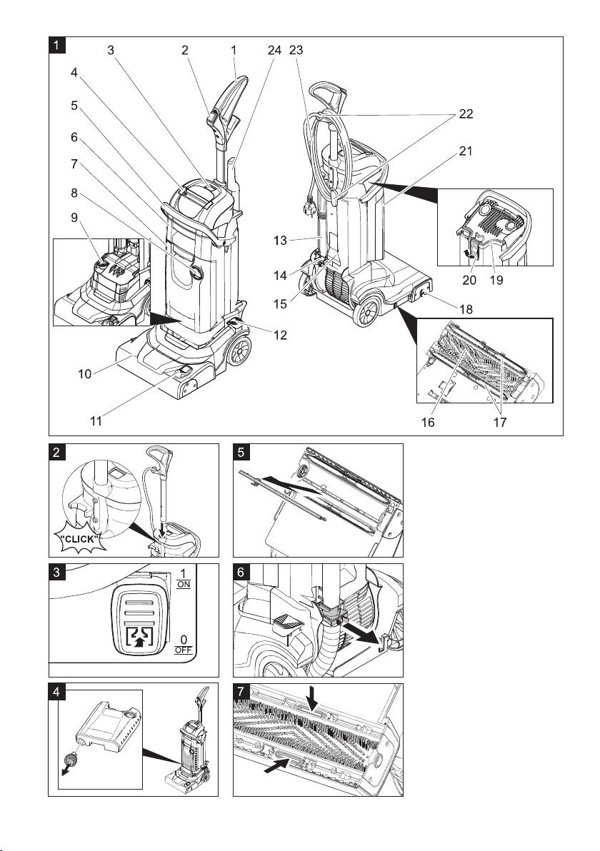 Î Hauptschalter Bürst-/Saugbetrieb auf