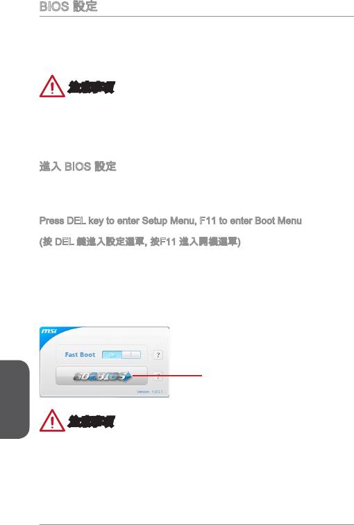 設定後,系統可能會有不穩定或無法開機的情形。若發生這種情形,請以清除 CMOS