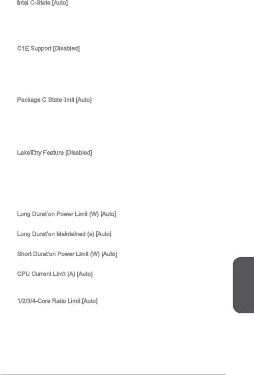 注意:以下欄位在前項 "Intel Turbo Boost" 設為 [Enabled] 才會出現。