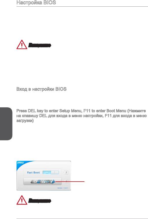 BIOS. Вы можете нажать “GO2BIOS” на экране в утилите “MSI Fast Boot” для