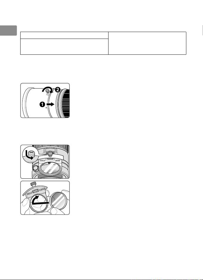 - The built-in flash and vignetting Using the lens hood Slip-in filter holder