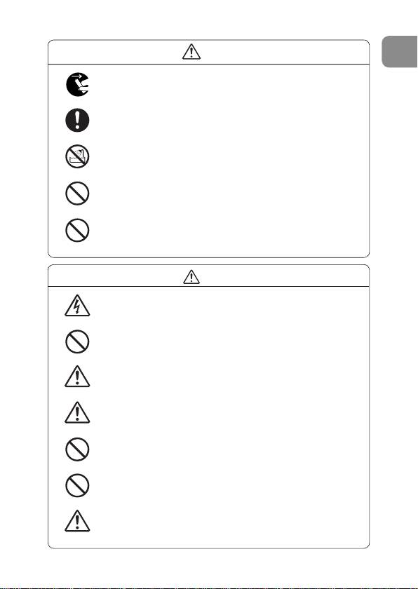 くに具体的な注意内容(左図の場合は感電注意)が描かれています。
