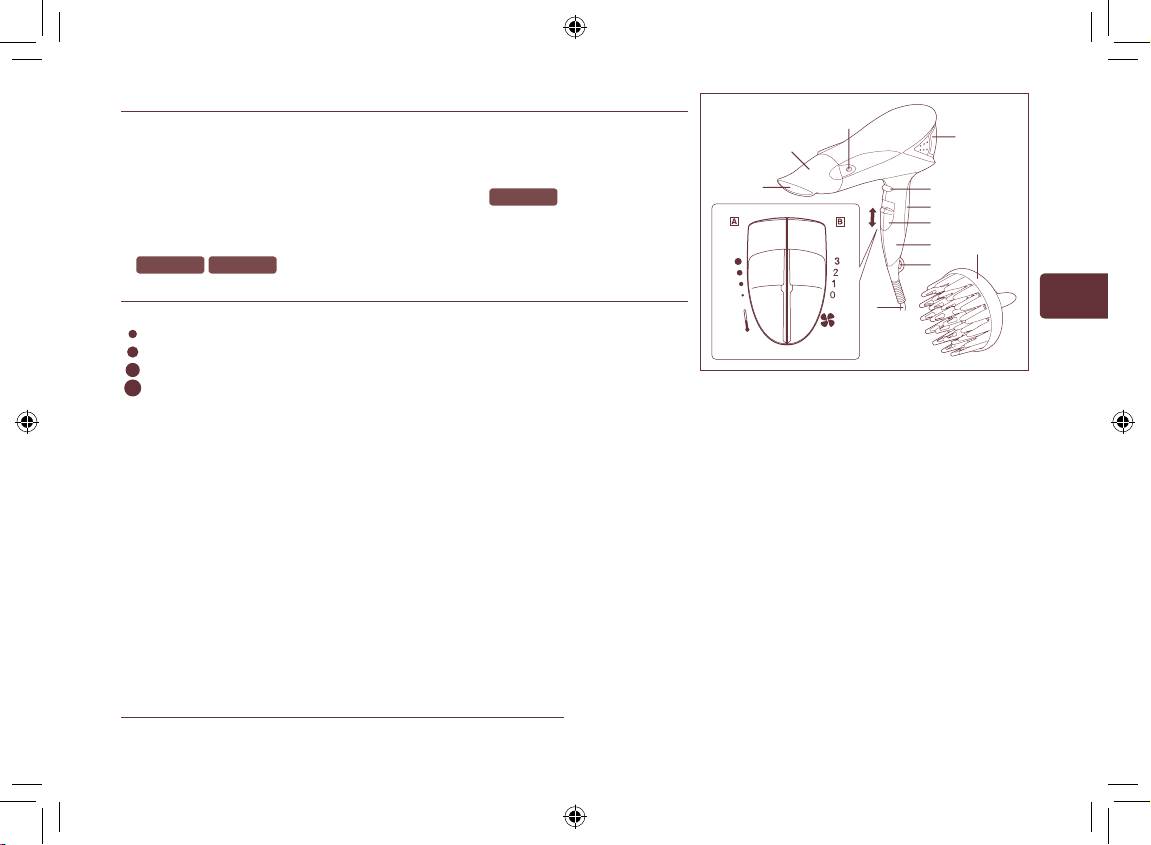 1. Desligue sempre o secador de cabelo (posição “0”) depois de usar