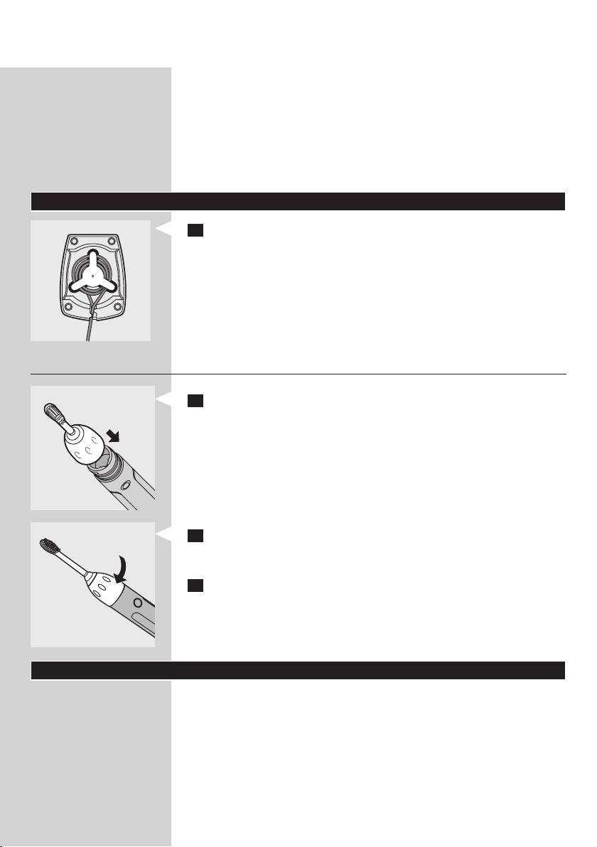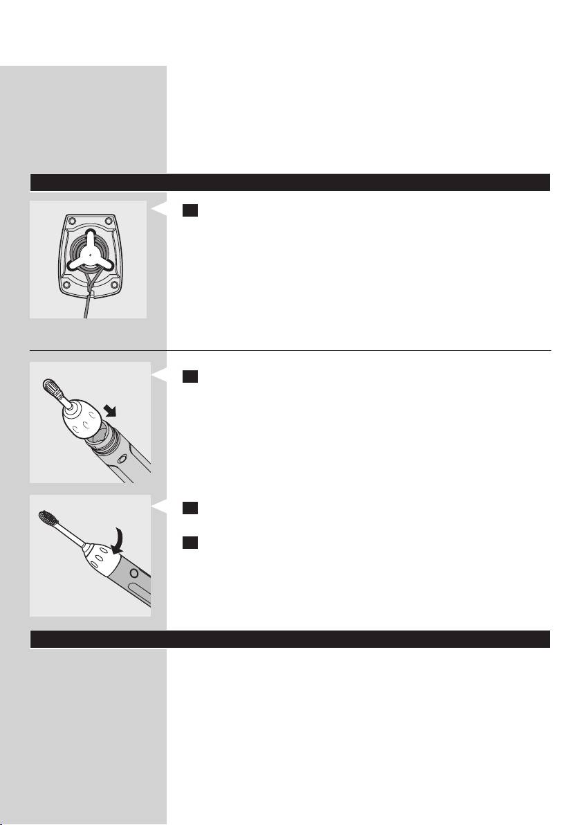 1 Placér børstehovedet på håndtaget ved at skubbe ribberne på