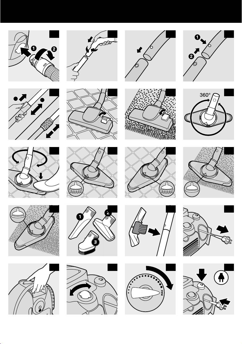 1 To connect the hose to the appliance, push it into the appliance and turn it clockwise (fig. 1).