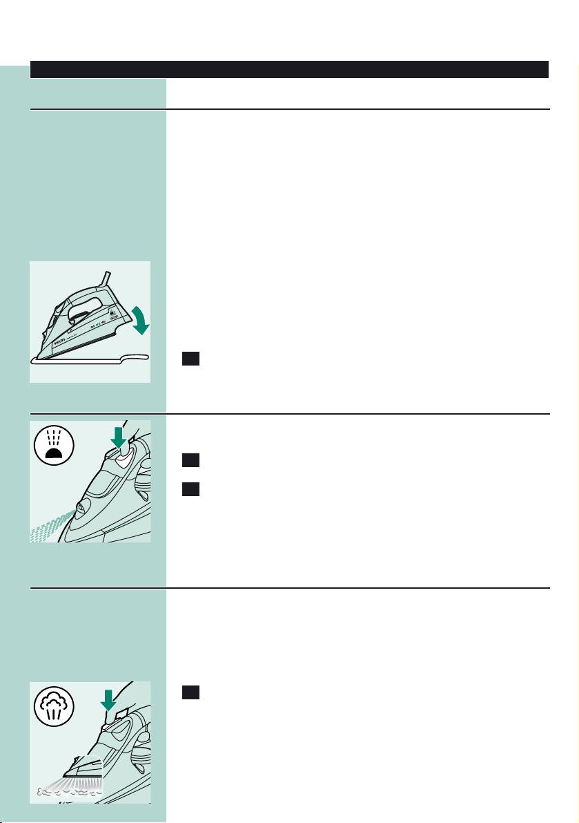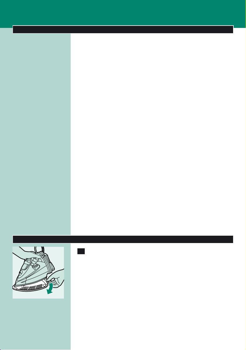 ◗ Never immerse the iron and the stand, if provided, in water.