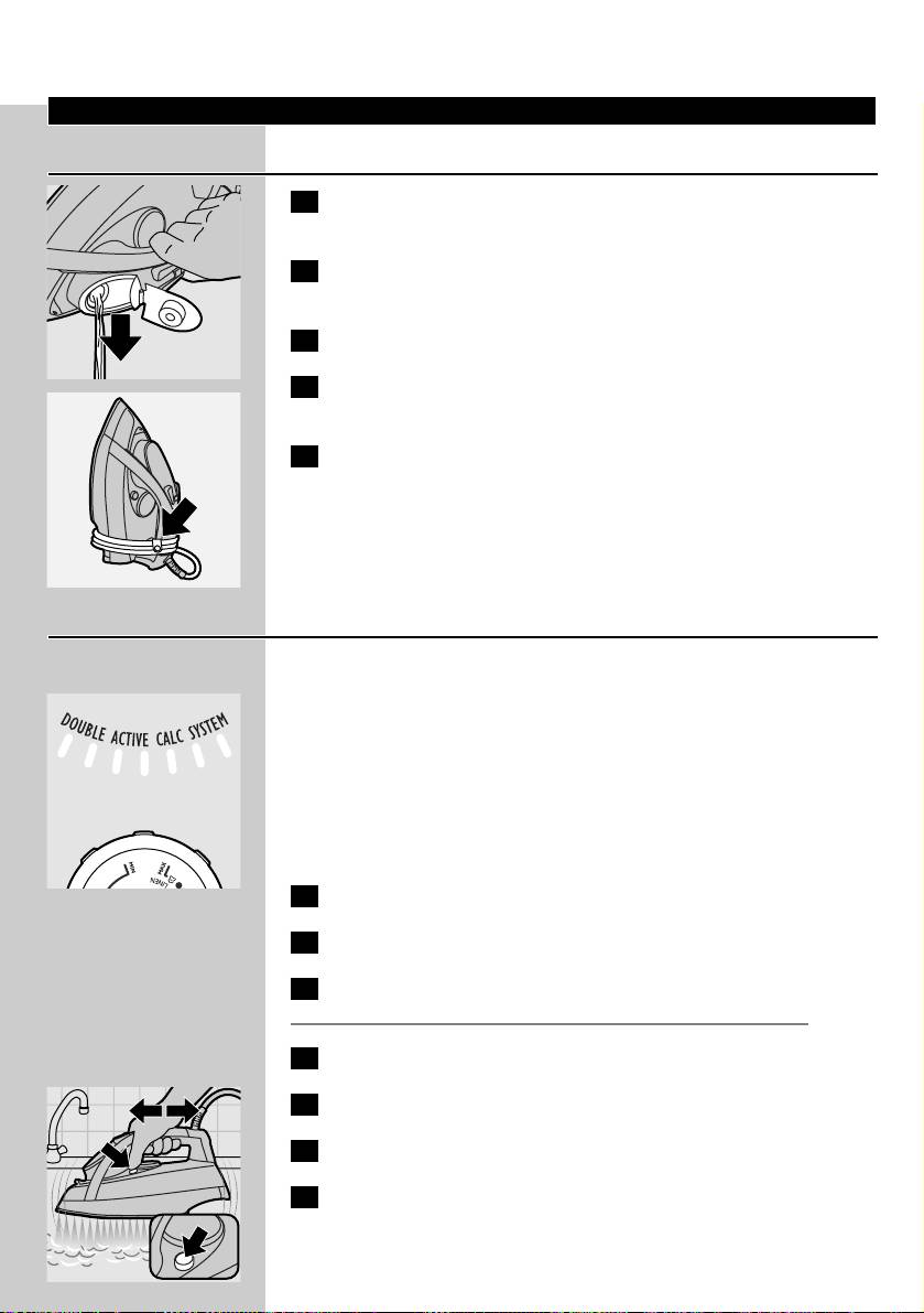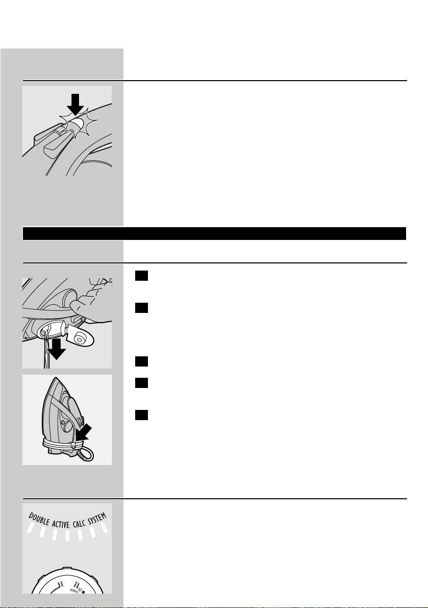 ◗ Never immerse the iron in water.