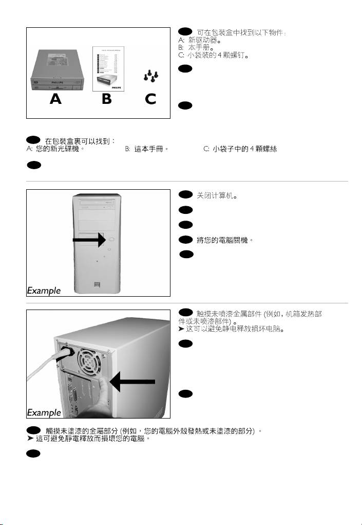 A: Uw nieuwe station B: Deze handleiding C: 4 schroeven in een zakje