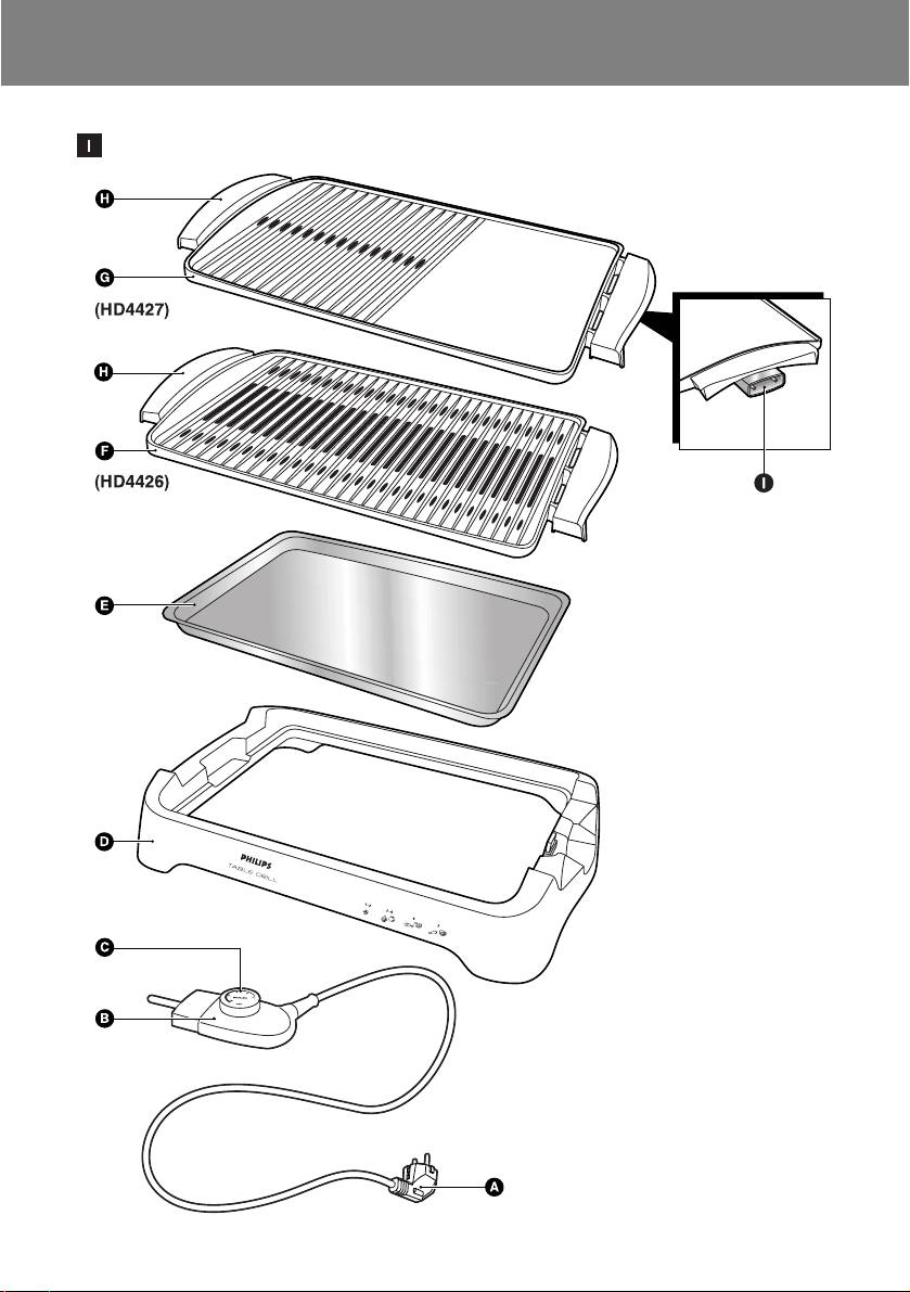 F Removable grilling plate (HD4426 only)