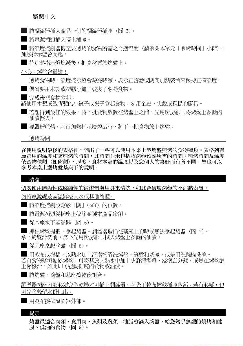 8 Place the ingredients on the grilling plate when the temperature light goes out.