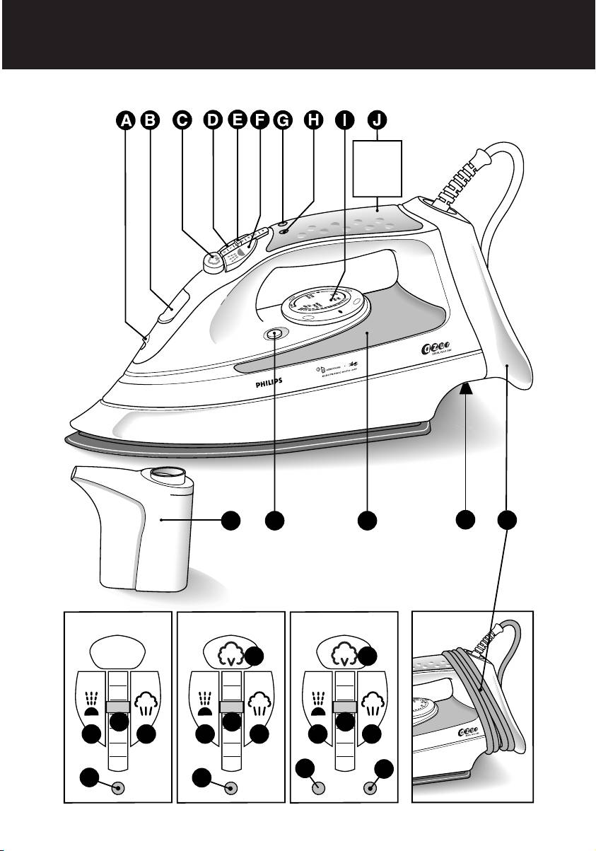 ◗ Never immerse the iron in water.