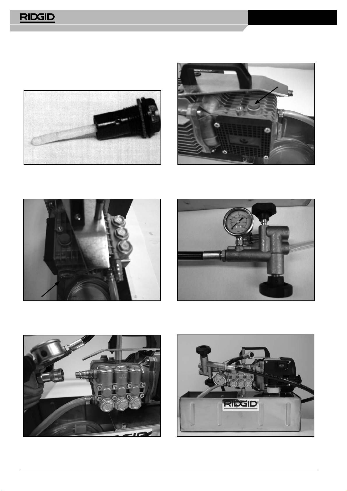 4. Start the pump, when the system is fi lled the pressure will increase by