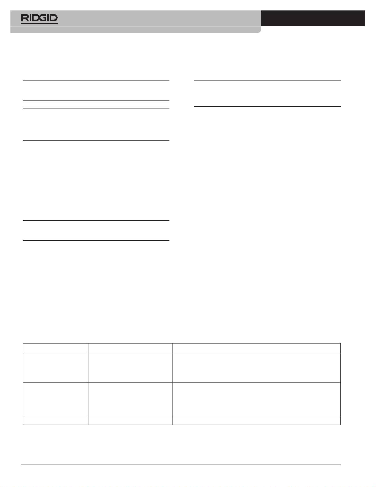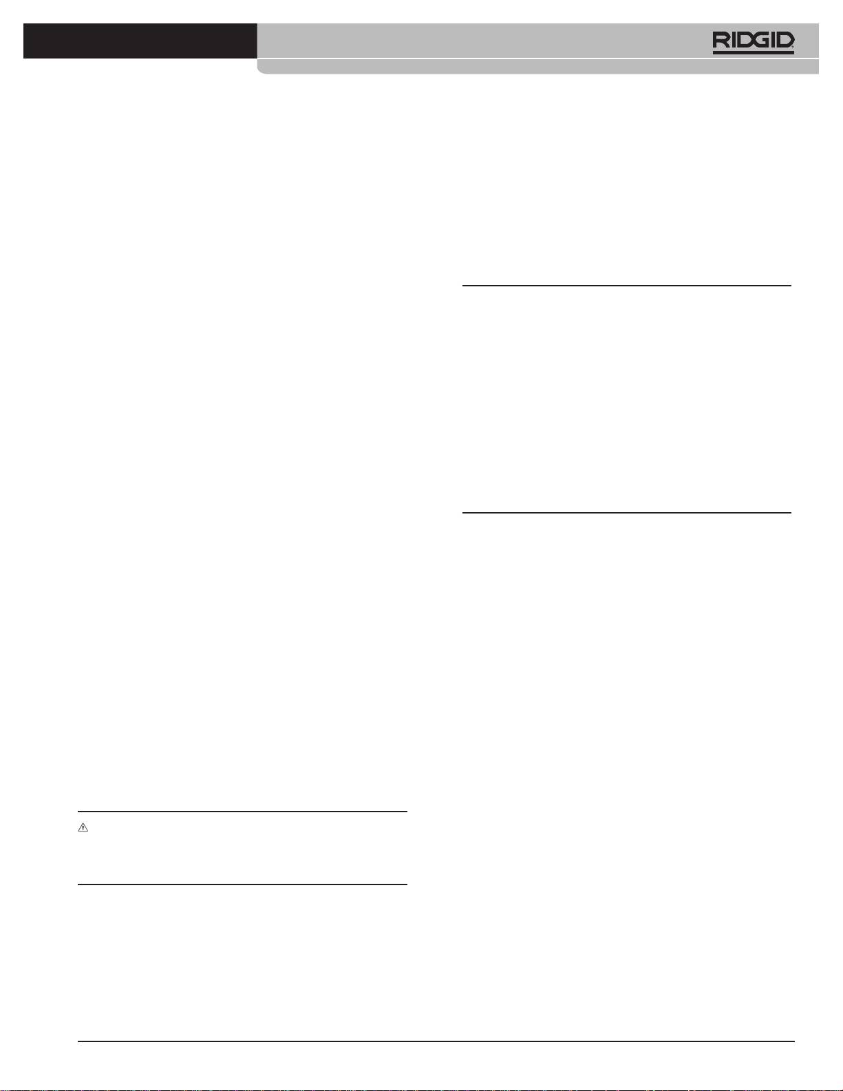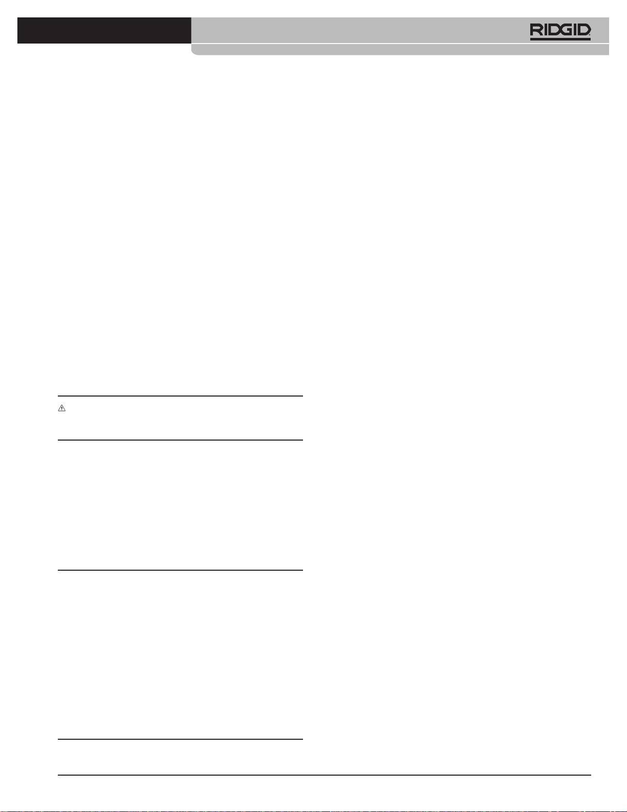 AVERTISSEMENT: Cet appareil doit être coné à un réparateur RIDGID agréé
