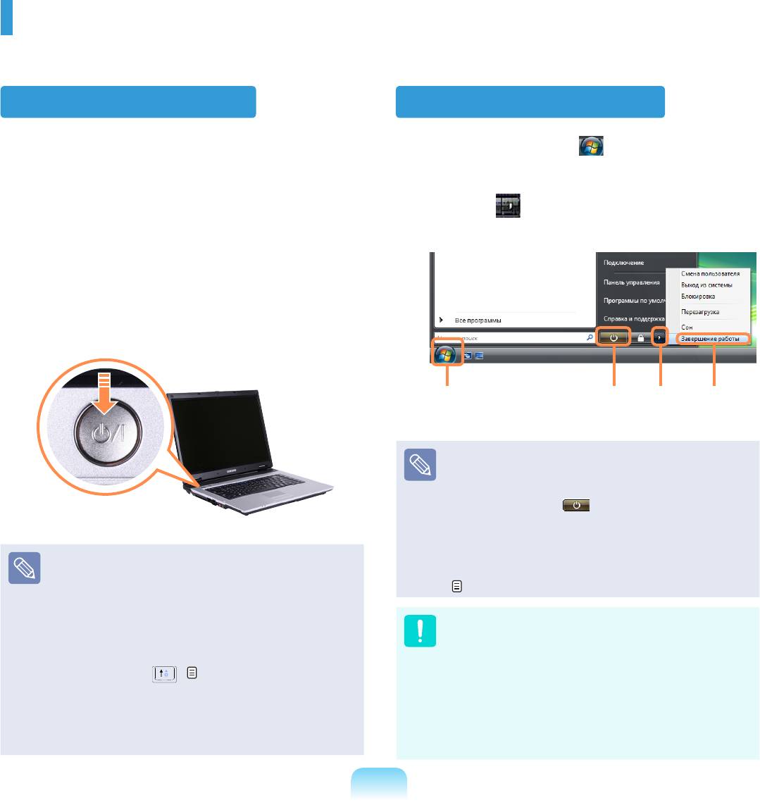 Включение и выключение компьютера